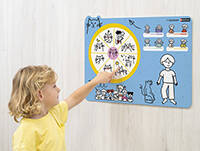 Le panneau mural permet d'installer un rituel simple mais essentiel. Il aide les enfants à faire une pause, à prêter attention à ce qu'ils ressentent, à trouver les bons mots pour en parler.