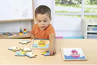 Les jeux de puzzle et d’encastrement offrent un support attrayant de découverte, entraînement et consolidation de différentes notions : l’alphabet, les nombres et les quantités, les formes géométriques, l’heure, les saisons, le monde du vivant, etc.