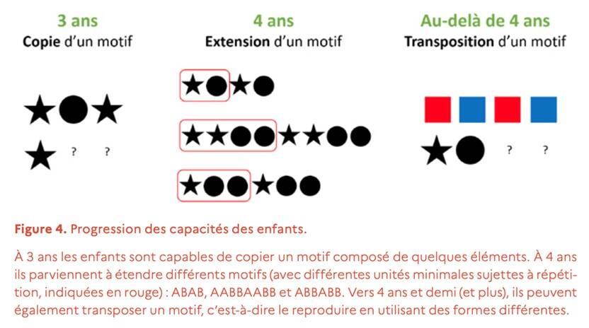 - il peut reproduire, étendre et abstraire certains motifs répétitifs à partir de 4 ans ;