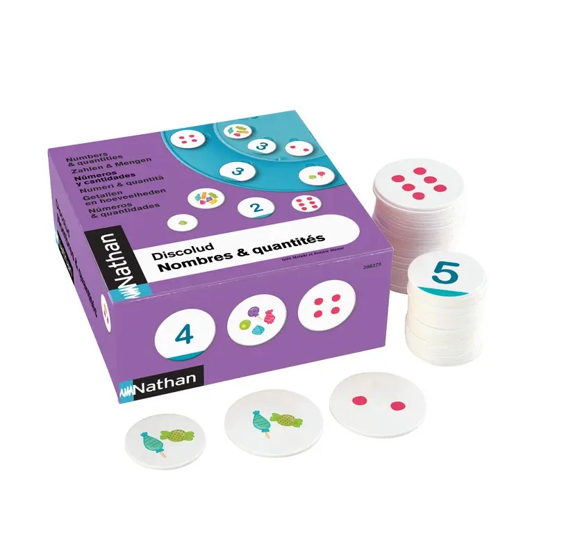 - Favorise la découverte des quantités et des nombres par la manipulation.
