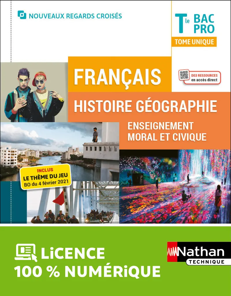 Le manuel de Français Histoire-Géographie-EMC Terminale Bac Pro Nouveaux Regards Croisés favorise largement l’interdisciplinarité. Il est proposé au choix en livre papier + licence numérique ou en licence 100% numérique.