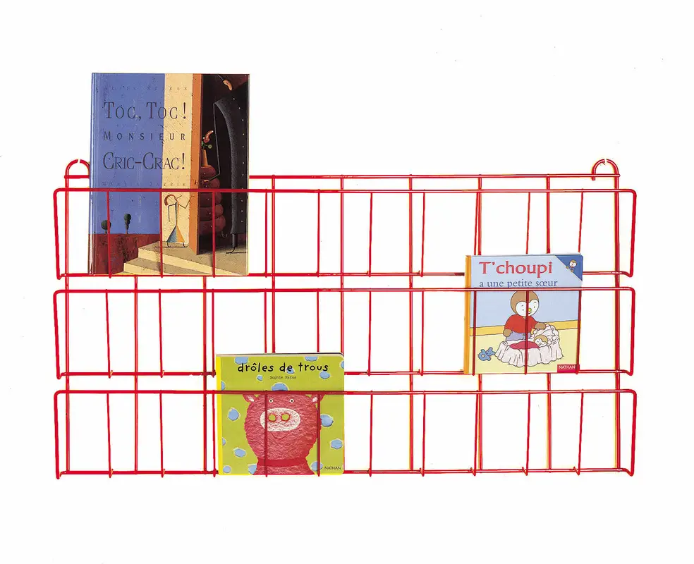- 4 niveaux à plans inclinés de hauteurs différentes et possèdant une butée pour retenir les livres,