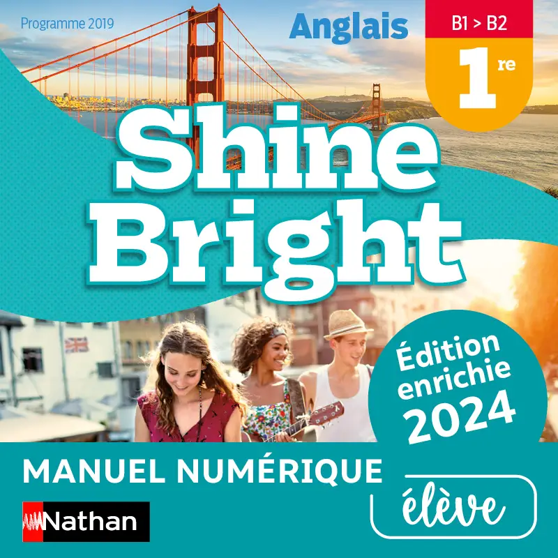 Le + de la collection ! Pour faciliter l'apprentissage de la grammaire avec vos élèves, Shine Bright 2de et 1re proposent des « Grammar tuto » : des vidéos originales à retrouver dans les manuels numériques et sur le site compagnon shine-bright.nathan.fr. Une méthode visuelle, synthétique et ludique de retenir les règles de grammaire en anglais !