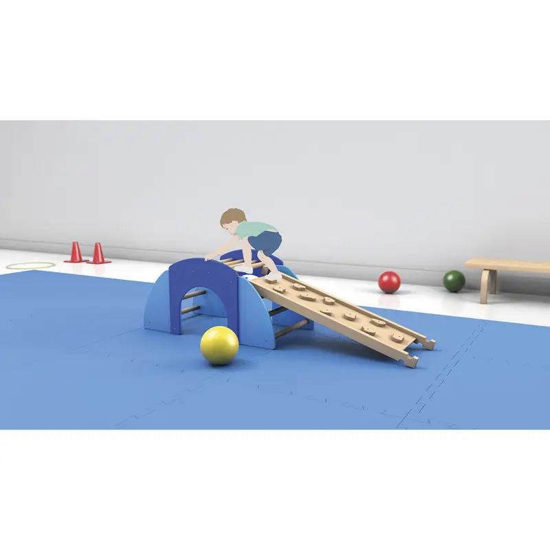 Ce sol de protection modulable, comprenant 4 dalles et 8 bordures, est un revêtement de sol léger et très amortissant.