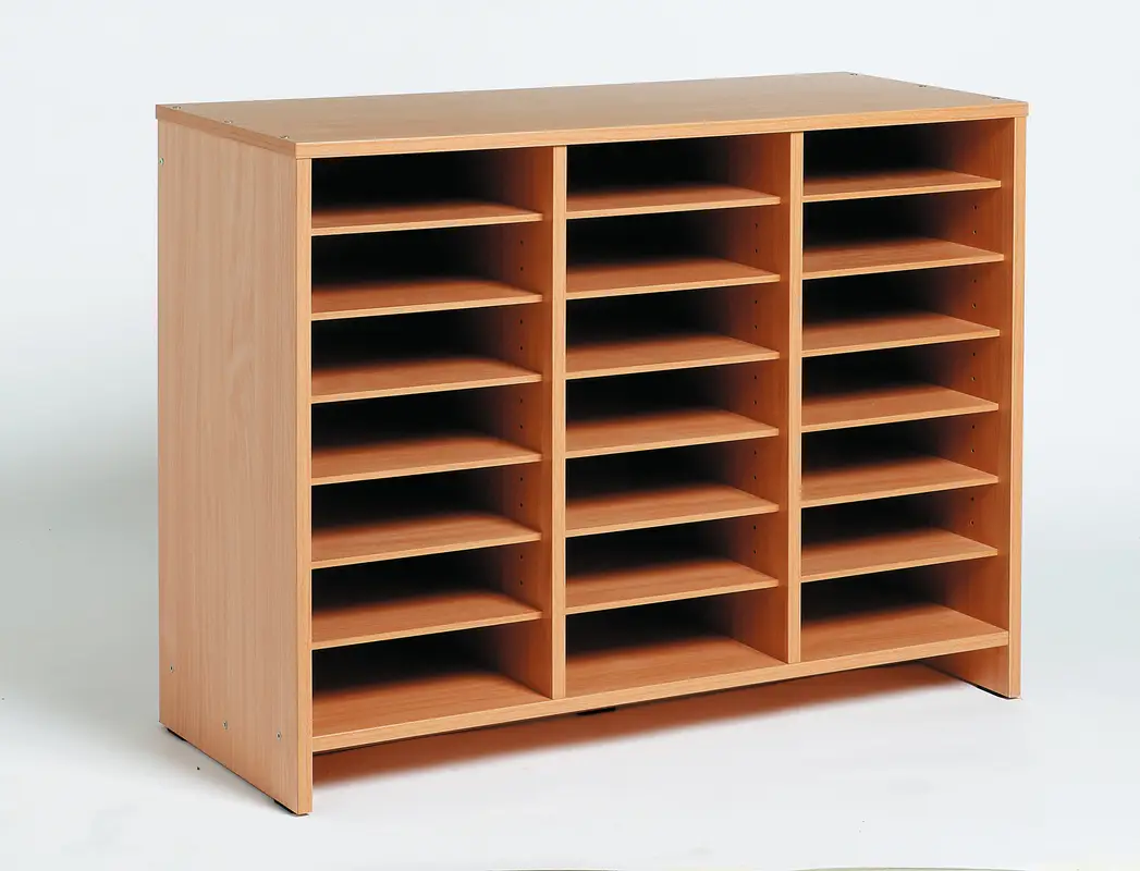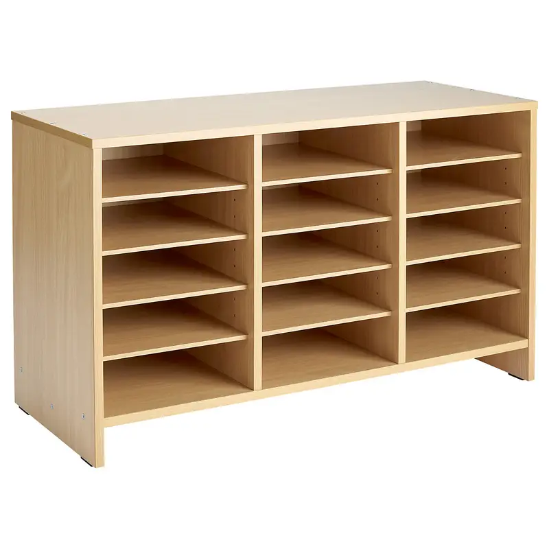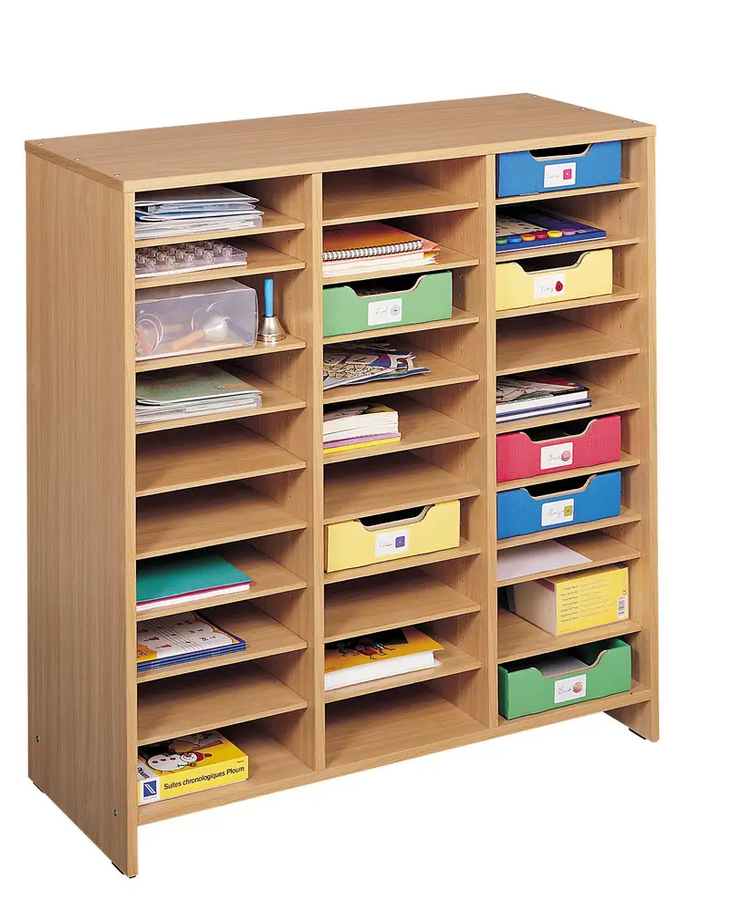 Surmeuble de présentation (teinte hêtre) permettant de mettre à disposition différents types de matériel ou de livres.