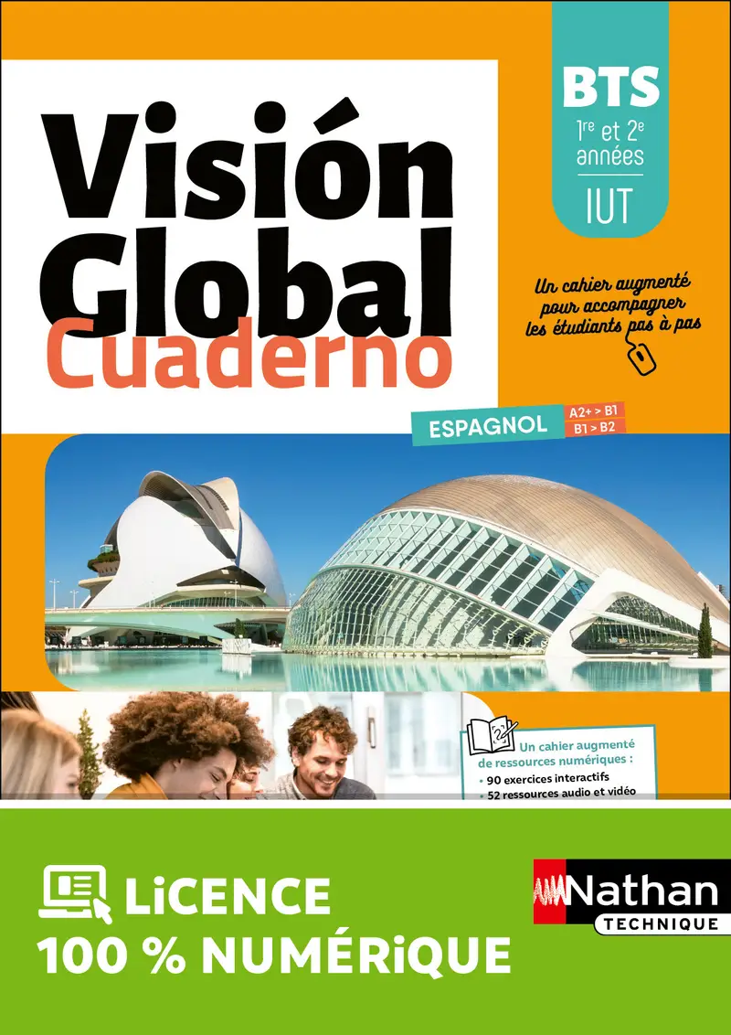 Visión Global Cuaderno est un cahier consommable augmenté de ressources numériques qui traite le programme de manière active, tout en assurant une révision efficace des fondamentaux de la langue, en mettant l’accent sur la préparation et la réussite de l’épreuve du BTS.