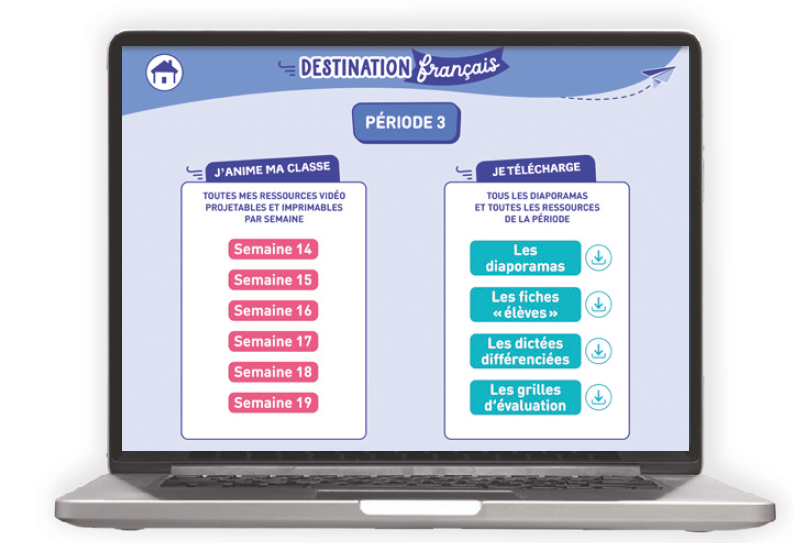4 pages d’activités chaque semaine, autour d’un thème hebdomadaire, avec :