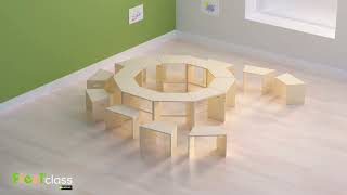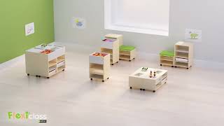 Des modules, assises et accessoires à combiner pour créer de multiples agencements de classe et permettre aux enfants de choisir leur position de travail ou de détente !