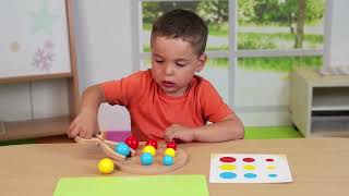 À l’aide, qui arrivera à libérer les objets de la cage à élastiques ? Ce jeu de manipulation original propose des activités ludiques de motricité fine.