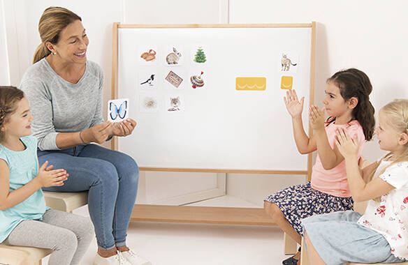 Axée sur l’écoute et la discrimination auditive fine, la conscience phonologique s’acquiert à l’oral par des jeux de manipulation avec les mots, les syllabes et les sons.