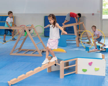 À leur arrivée à l’école maternelle, si tous les enfants ne sont pas au même niveau de développement moteur, la plupart se projettent aisément dans le mouvement et l’effort. Ils découvrent, par exemple, la possibilité d’enchaîner des actions motrices dans un parcours conçu pour eux en salle de motricité.