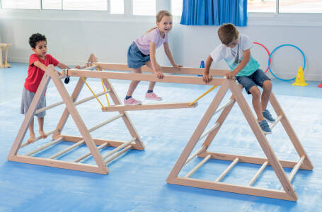 Les éléments de structure, stables, robustes et ludiques, permettent de travailler les déplacements et les équilibres, deux actions motrices fondamentales.