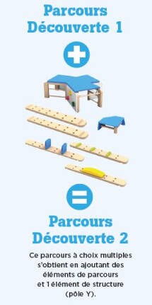 Combinés aux éléments de structure, les éléments de parcours permettent d’inventer de nouveaux parcours stimulants et d’accompagner progressivement l’enfant dans la prise de risques, en faisant varier la hauteur d’évolution et la difficulté des situations motrices proposées.