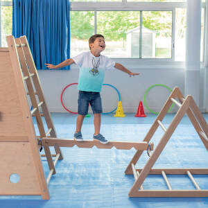 Les éléments de parcours peuvent être utilisés seuls pour travailler l’équilibre au travers d’activités facilement modifiables pendant les séances grâce aux accessoires amovibles (bosse, bascule, obstacles...).