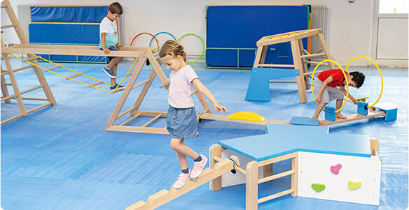 Les éléments de parcours sont utilisés seuls ou connectés avec les autres éléments bas de motricité et aux structures Actigym® pour créer des parcours bas de motricité et travailler l’équilibre au travers d’activités facilement modifiables grâce aux accessoires amovibles.