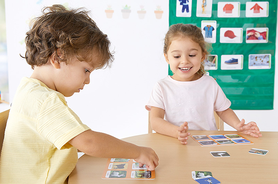 Memory, loto, jeu de l’oie, jeu des familles… Pour chaque thème, 6 à 12 jeux sont proposés pour se remémorer les mots appris et les réinvestir dans des contextes différents, tout au long de l’année.
