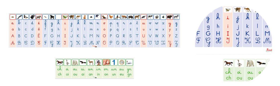 … à la composition des premiers mots associées aux images, avec des lettres déjà formées…