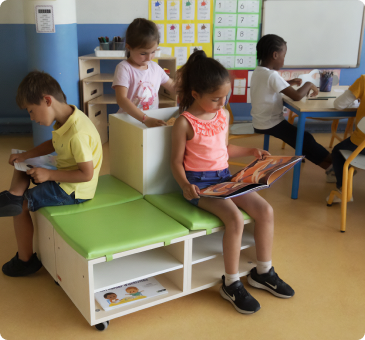 Tout ça dans un espace dédié de la classe, modulable pour évoluer avec les enfants.