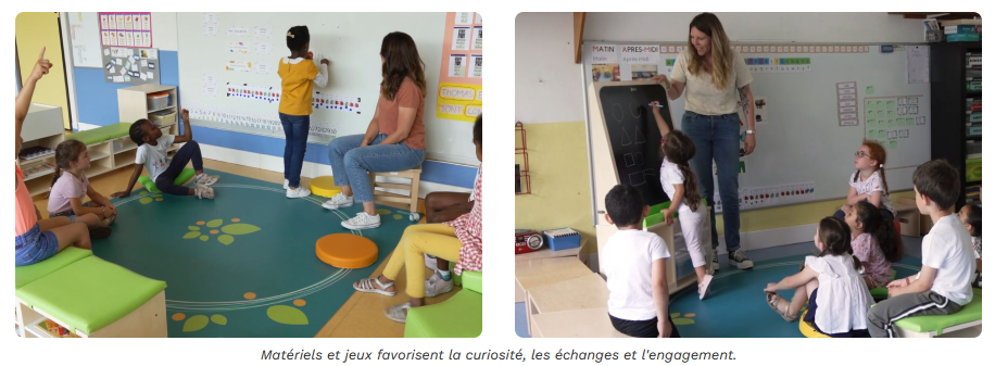 - Un aménagement adapté à des situations de jeu variées, qui impliquent les enfants et permettent un choix pour une plus grande motivation et autonomie.